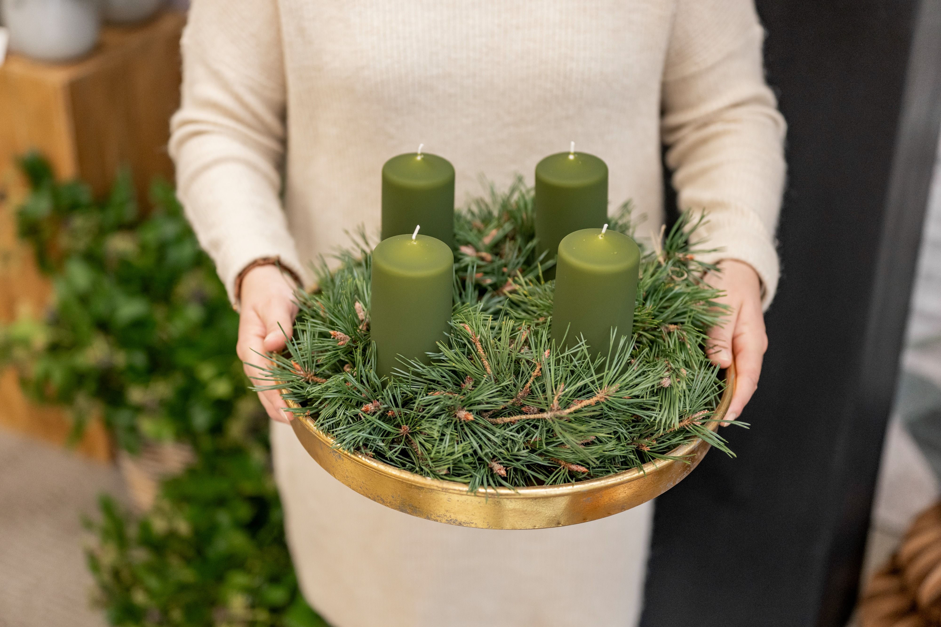 Melde dich jetzt gleich zu einem unserer beliebten Adventskranz-Kursen an.
